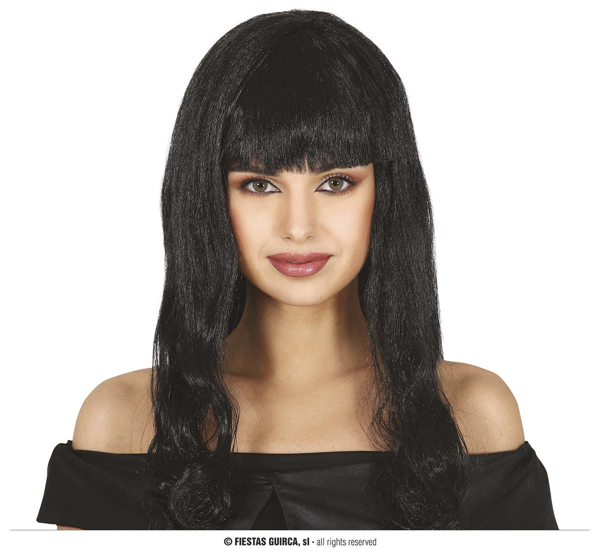 - Czarna długa peruka z grzywką