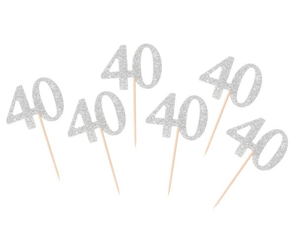 • TOPPER NA TORT NA 40 URODZINY – SREBRNY BROKAT B&C