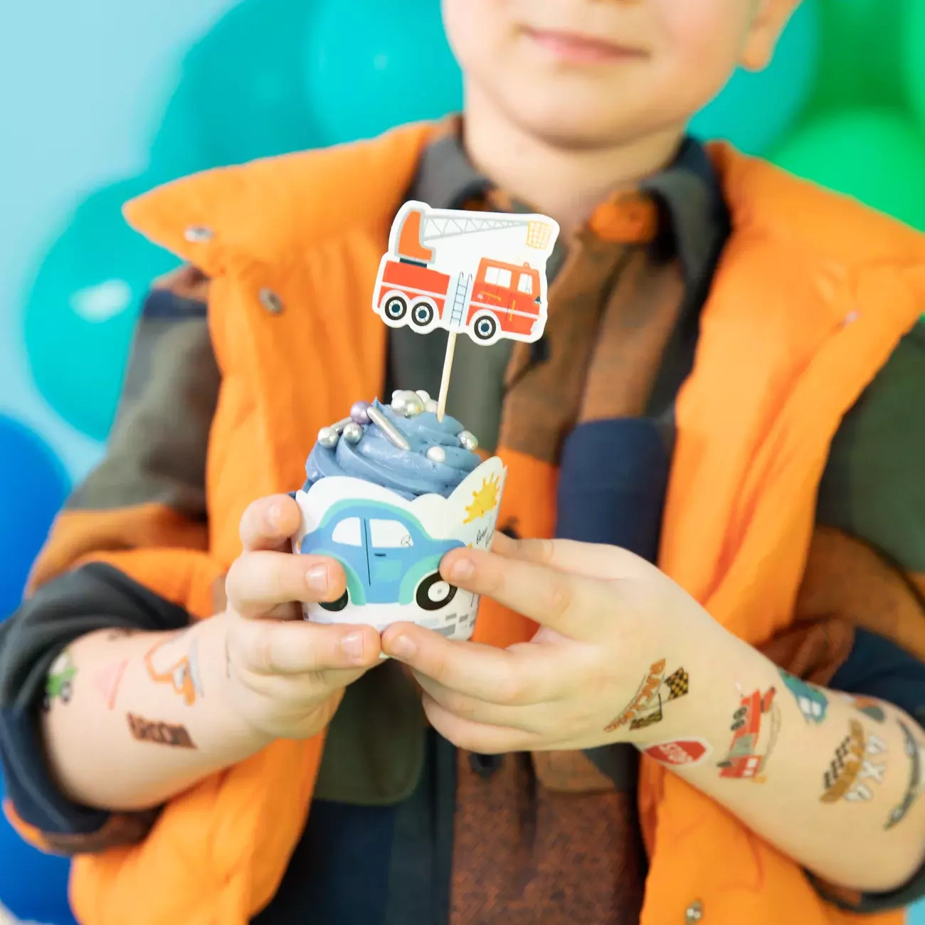- Toppery na tort lub do babeczek: koparka, wywrotka, wóz strażacki, garbus, jeep, radiowóz, znak stop i sygnalizacja świetlna, doskonale podkreślą tematykę urodzinowej imprezy