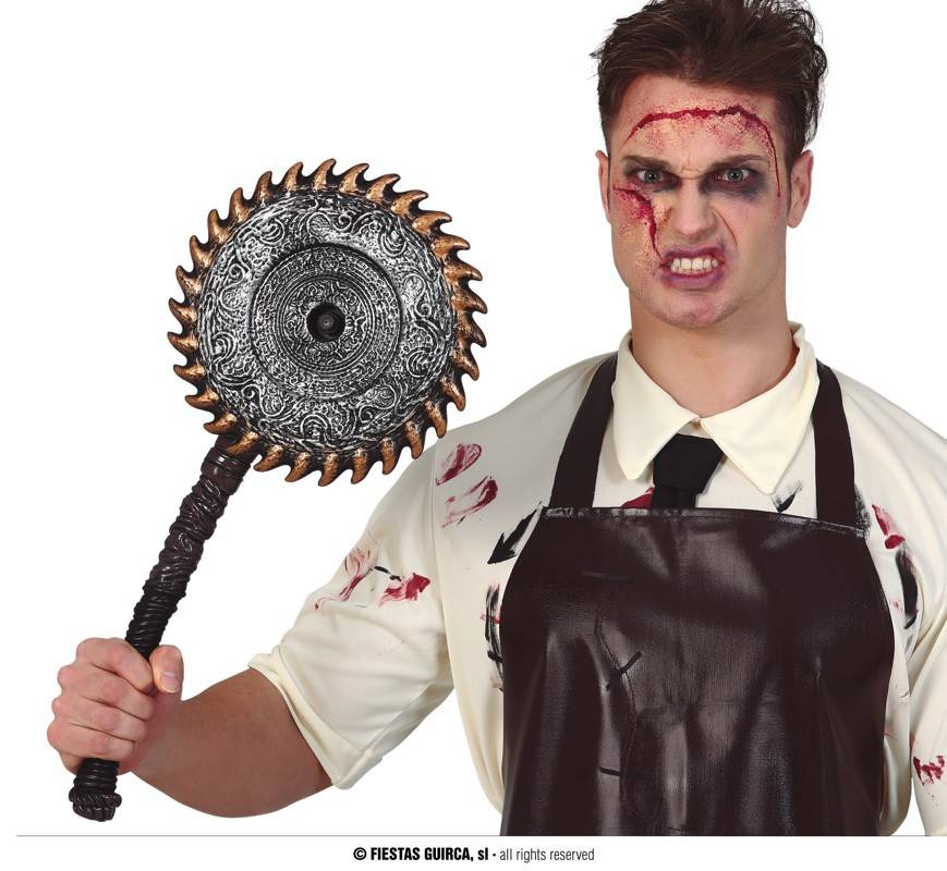 - Gadżet na Halloween w postaci ręcznej piły tarczowej