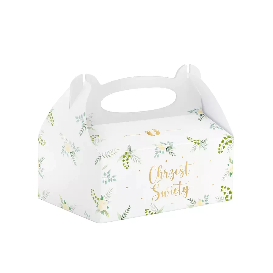 • Pudełko w kolorze białym, nadruk zielony i złoty błyszczący