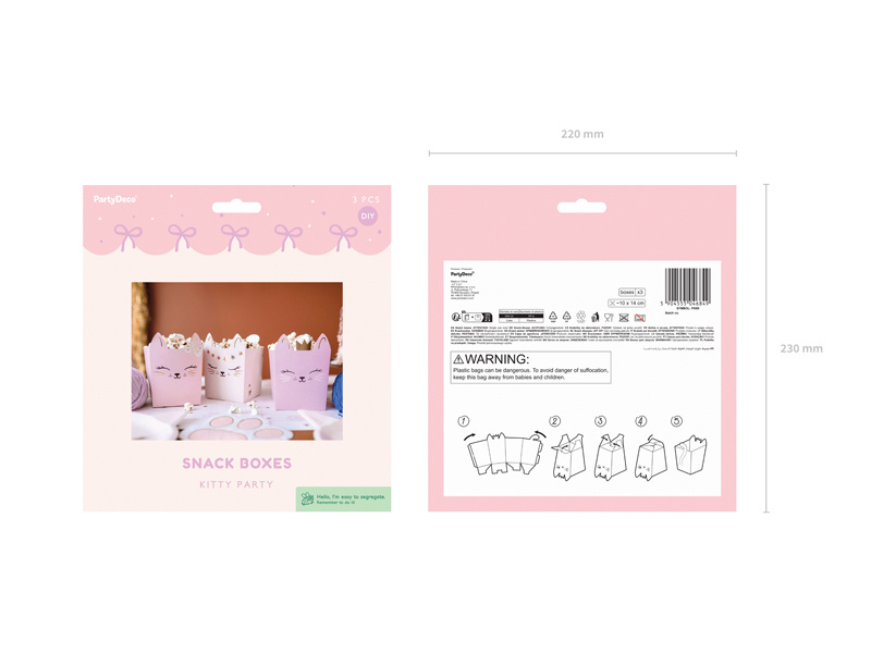 - Pudełka na przekąski Kotki wykonane z papieru, mix kolorów. Zestaw zawiera 3 pudełka.