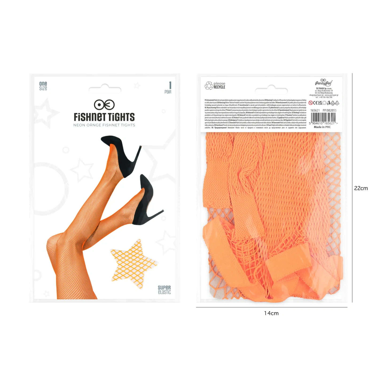 - Rajstopy kabaretki z siateczki w kolorze pomarańczowym neonowym. Idealny dodatek na imprezę w stylu disco, lat 80-tych.