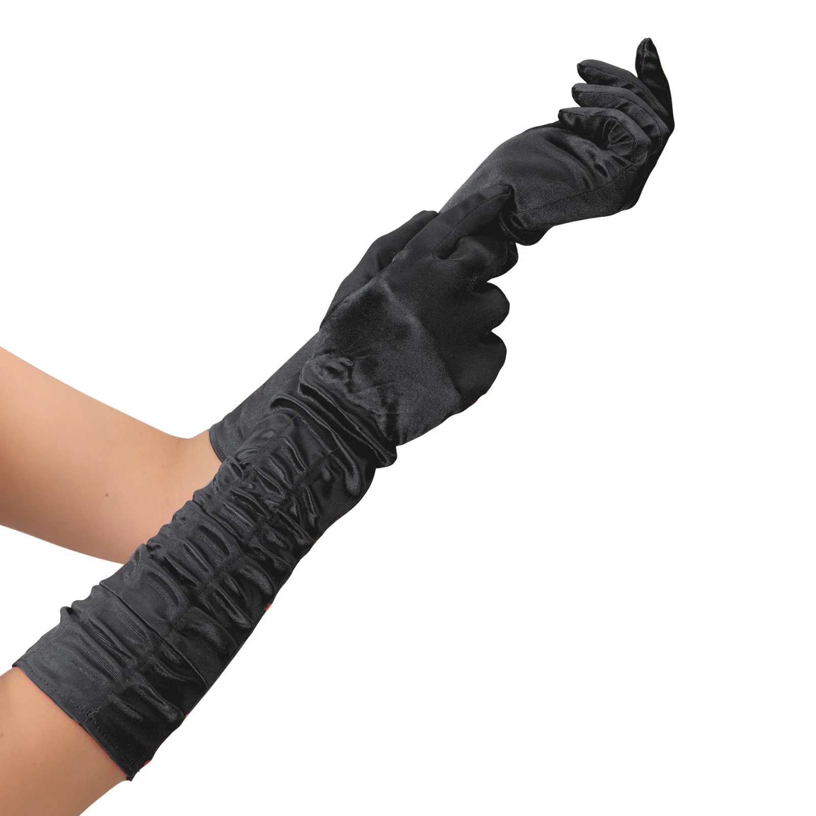 Produkt doskonale sprawdzi się jako element kostiumów tematycznych oraz przebrań na różnego typu imprezy. Czarne, satynowe rękawiczki z marszczeniem możesz połączyć z suknią w stylu „Wielkiego Gatsby’ego”, stylizacją kabaretową, strojem francuskiej damy, czarnej księżniczki, wampirzycy czy królowej nocy. Użyjesz ich podczas balu maskowego, halloweenowego przyjęcia, wieczoru panieńskiego, imprezy firmowej w klimacie retro lub teatralnych przedstawień i musicali.