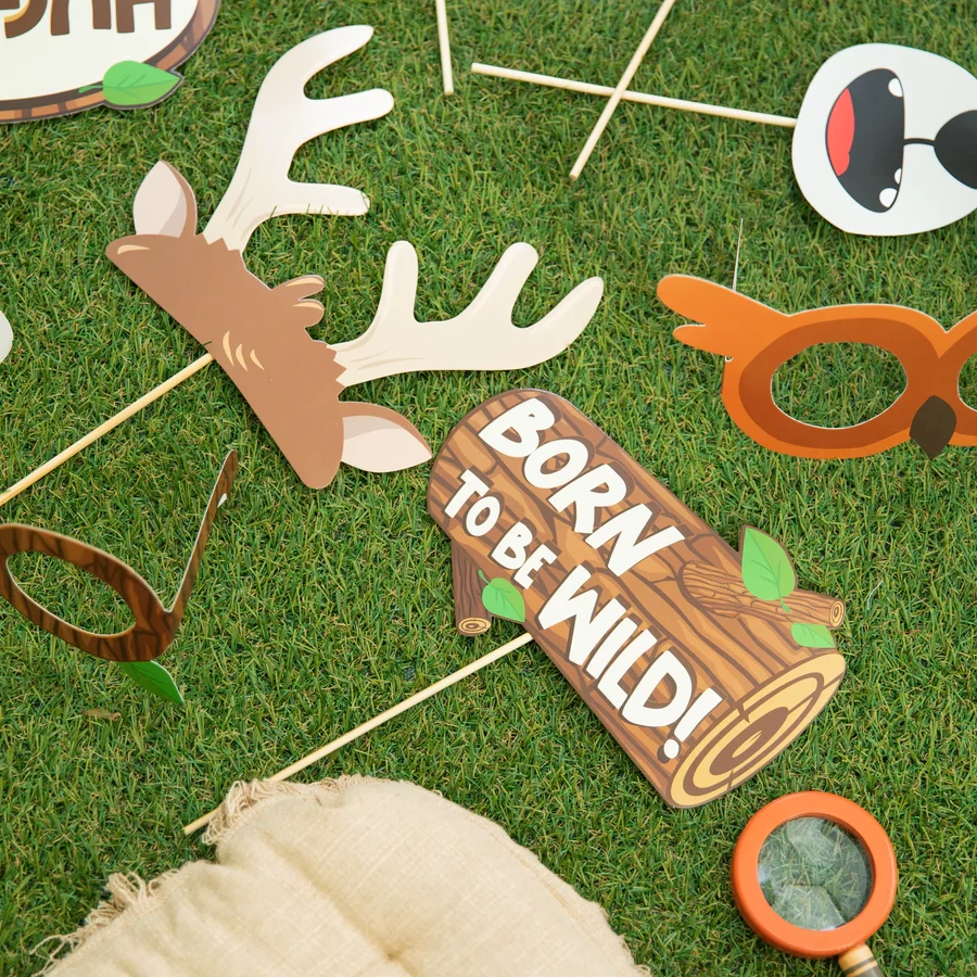 - W zestawie: 9 rekwizytów (3 napisy, 3 nosy zwierzaków, 2 pary okularów, rogi), 9 drewnianych patyczków i 20 kropek klejowych i 3 paski taśmy klejącej do mocowania rekwizytów