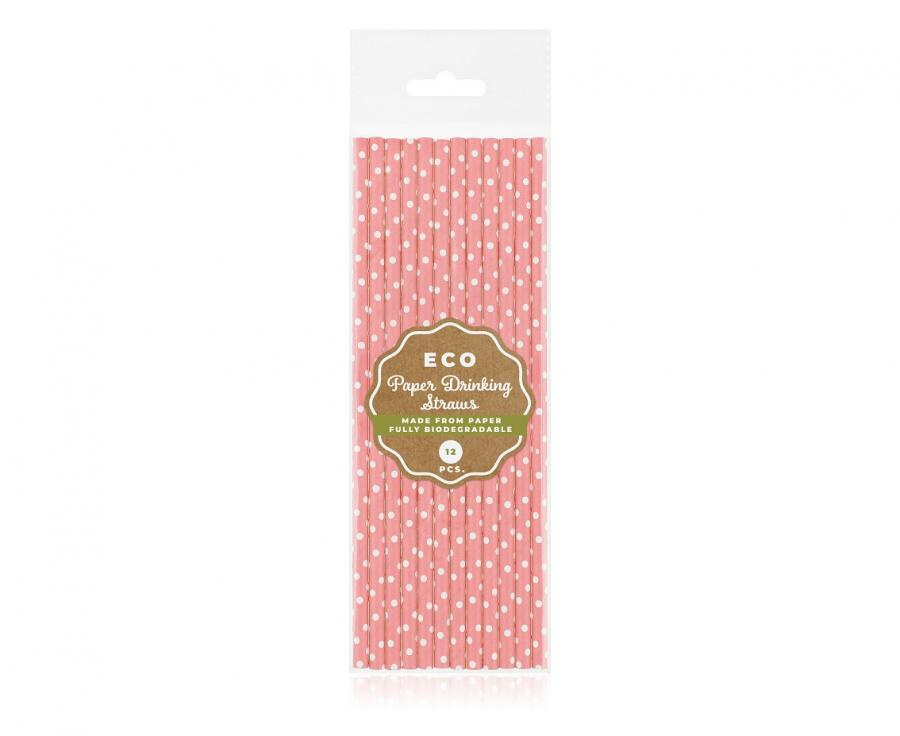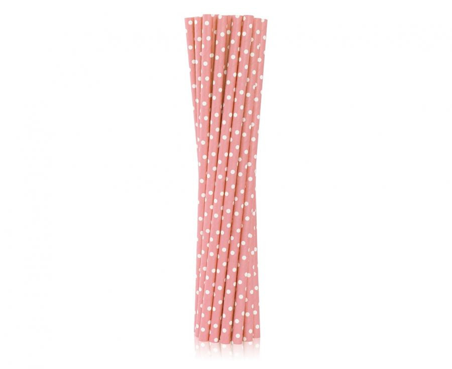 Rurki (słomki) pap. jasnoróżowe w białe groszki/12szt