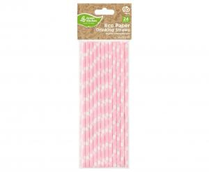 - Zestaw 24 jasnoróżowych słomek do picia.