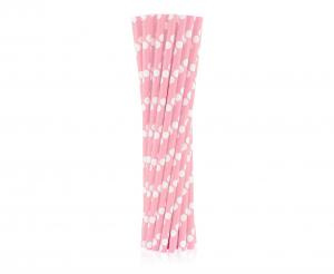 - SŁOMKI PAPIEROWE JASNORÓŻOWE W BIAŁE GROSZKI.
