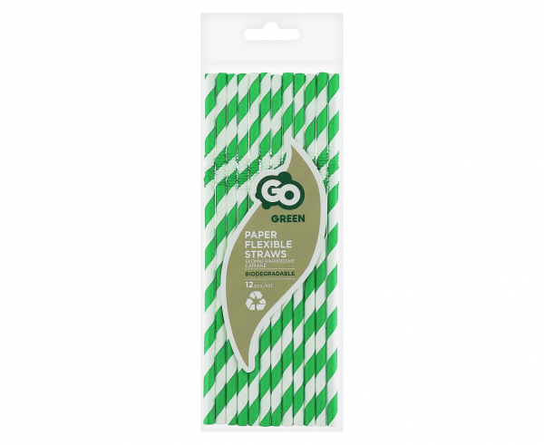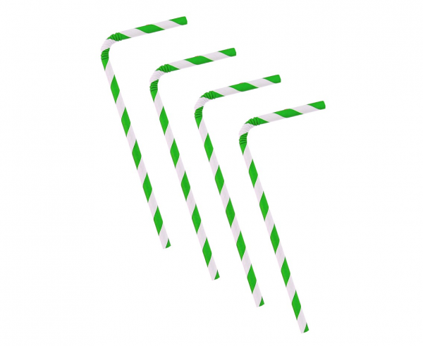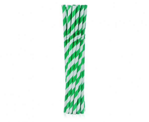 Rurki (słomki) pap. łamane, zielone paski, 6x200mm / 12 szt.