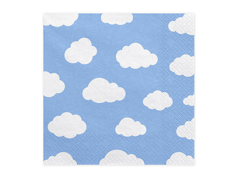 - Serwetki papierowe Chmurki w kolorze błękitnym z białym nadrukiem,
