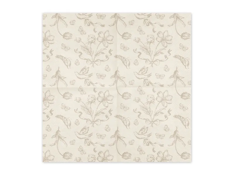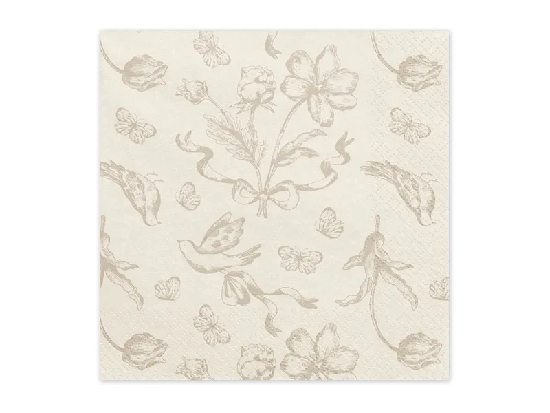 - Papierowe serwetki w kolorze beżowym z ciemnobeżowymi kwiatami.