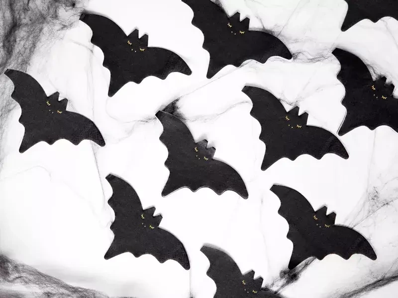 - Serwetki papierowe Nietoperz w kolorze czarnym ze złotym metalizowanym nadrukiem,