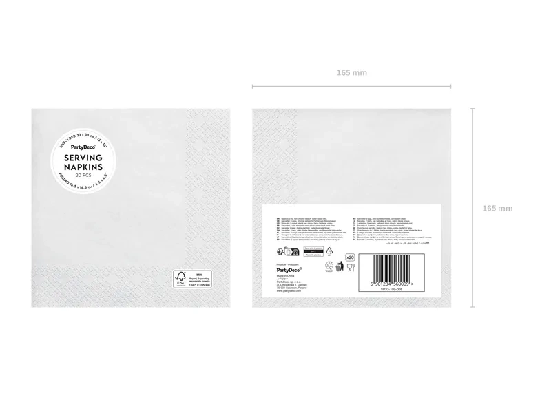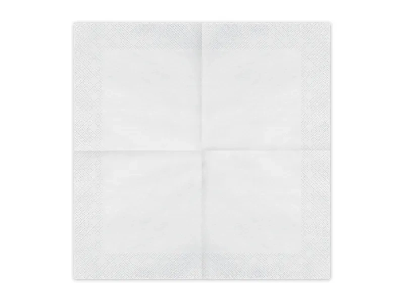 - Serwetki papierowe w kolorze białym. Wymiary po rozłożeniu ok. 33 x 33 cm, wymiary po złożeniu ok. 16,5 x 16,5 cm.
