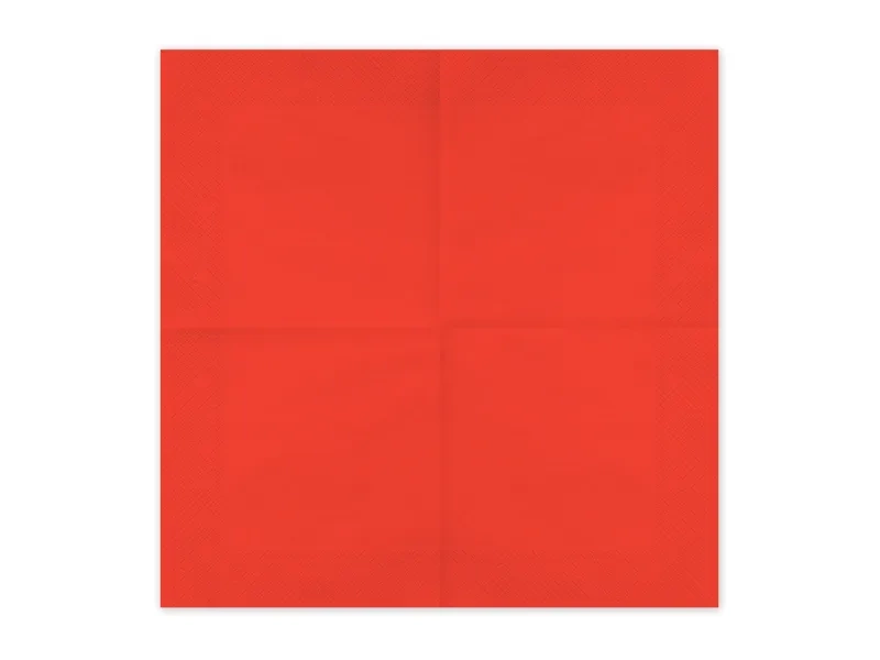 • Serwetki papierowe w kolorze czerwonym. Wymiary po rozłożeniu ok. 33 x 33 cm, wymiary po złożeniu ok. 16,5 x 16,5 cm.