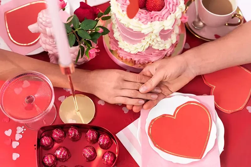 - Serwetki papierowe w kształcie serca w kolorze czerwonym ze złotym nadrukiem,