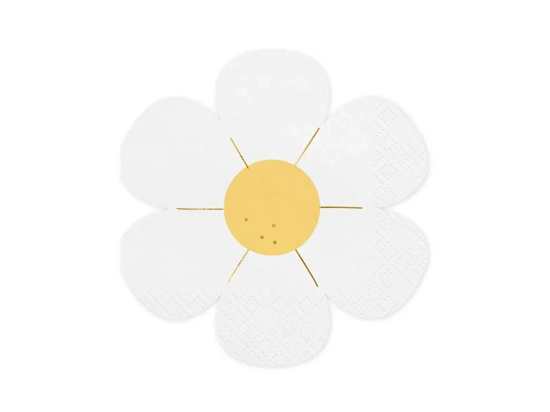 - Serwetki papierowe Stokrotka w kolorze białym z kolorowym nadrukiem, wymiary po rozłożeniu ok. 32 x 33 cm, wymiary po złożeniu ok. 16 x 16.5 cm.