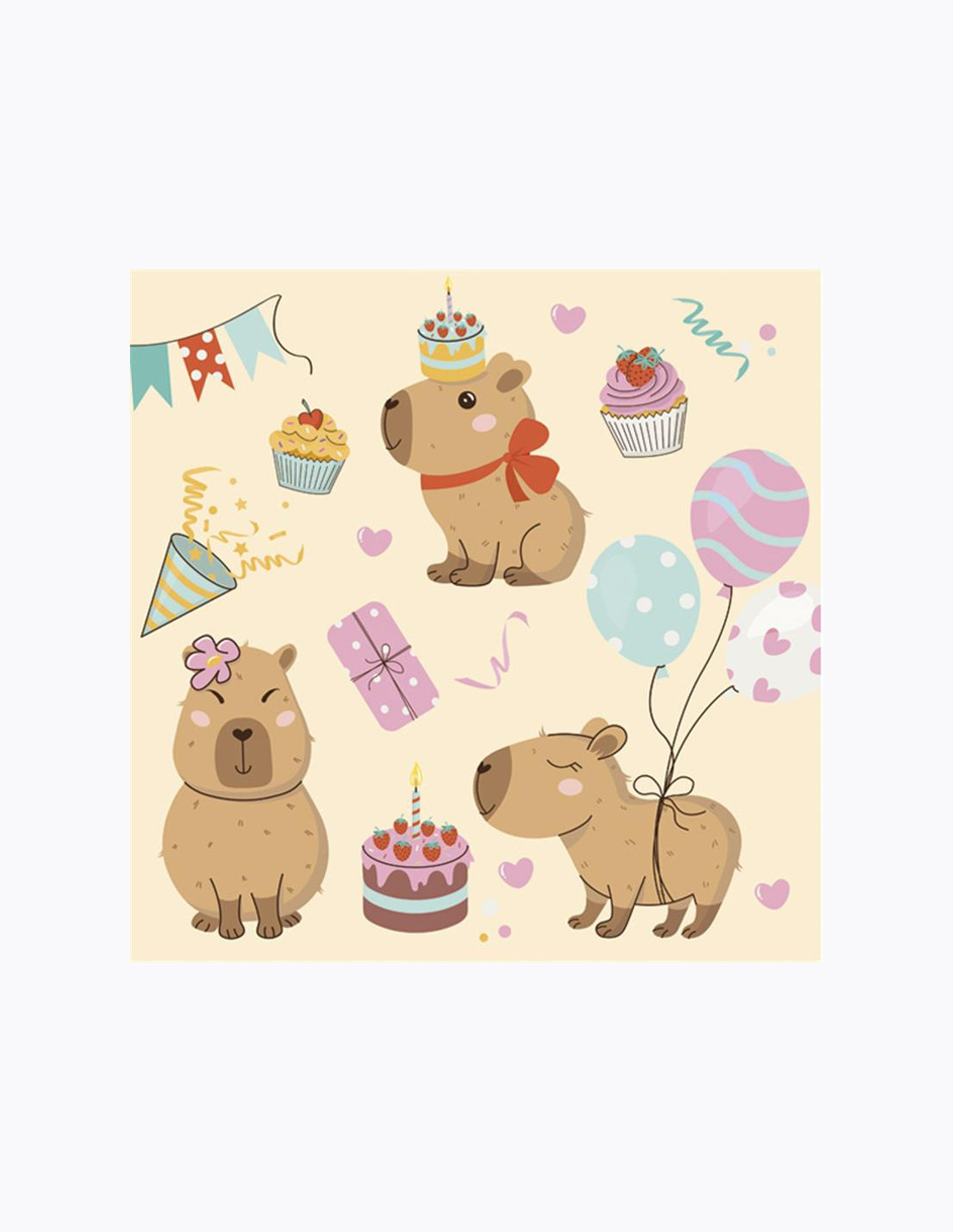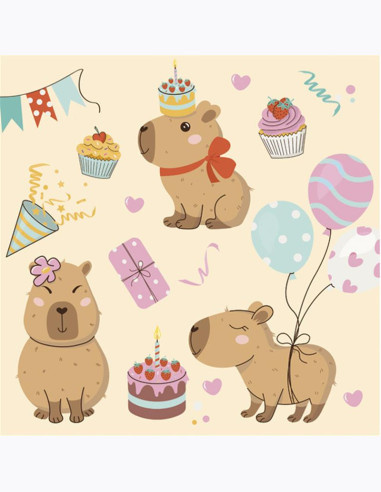 Serwetki "Urodzinowe Kapibary", 33x33, 20 szt