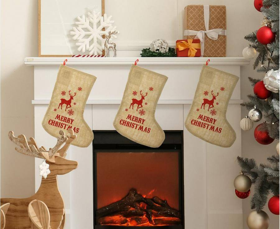 Skarpeta świąteczna z juty "Renifer", rozm.: 44,5 cm