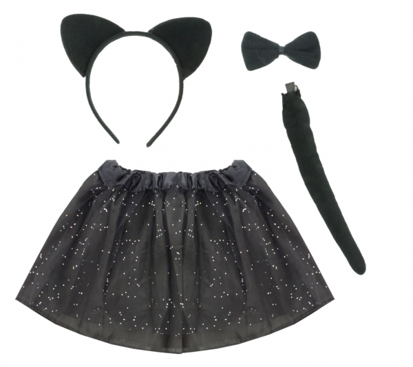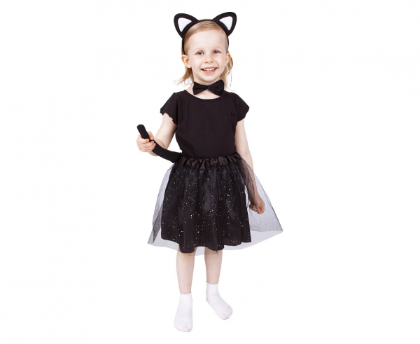 Strój dla dzieci Kotek Czarny (spódniczka, ogon na rzep, muszka, opaska), rozm. 3-6 lat