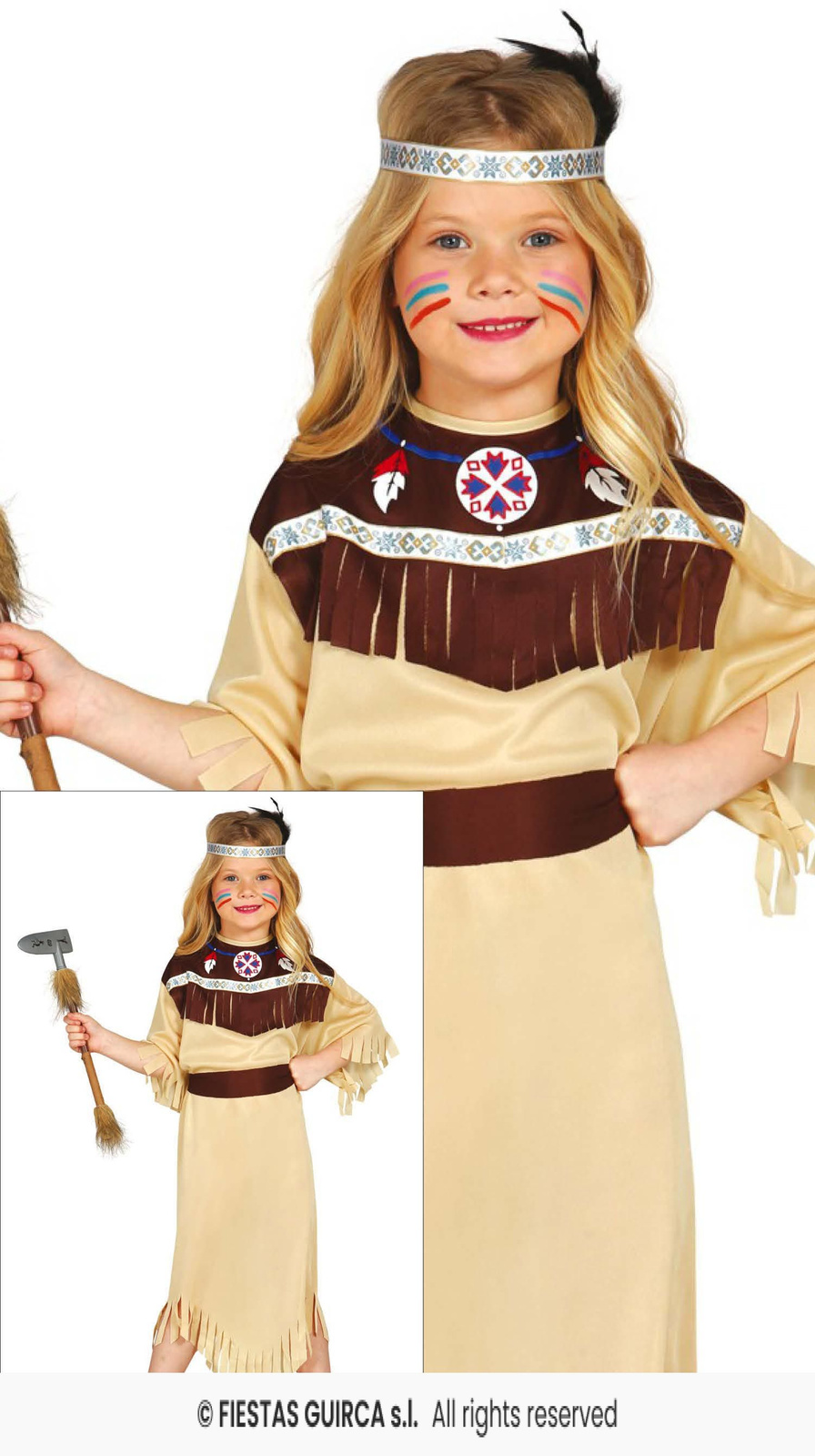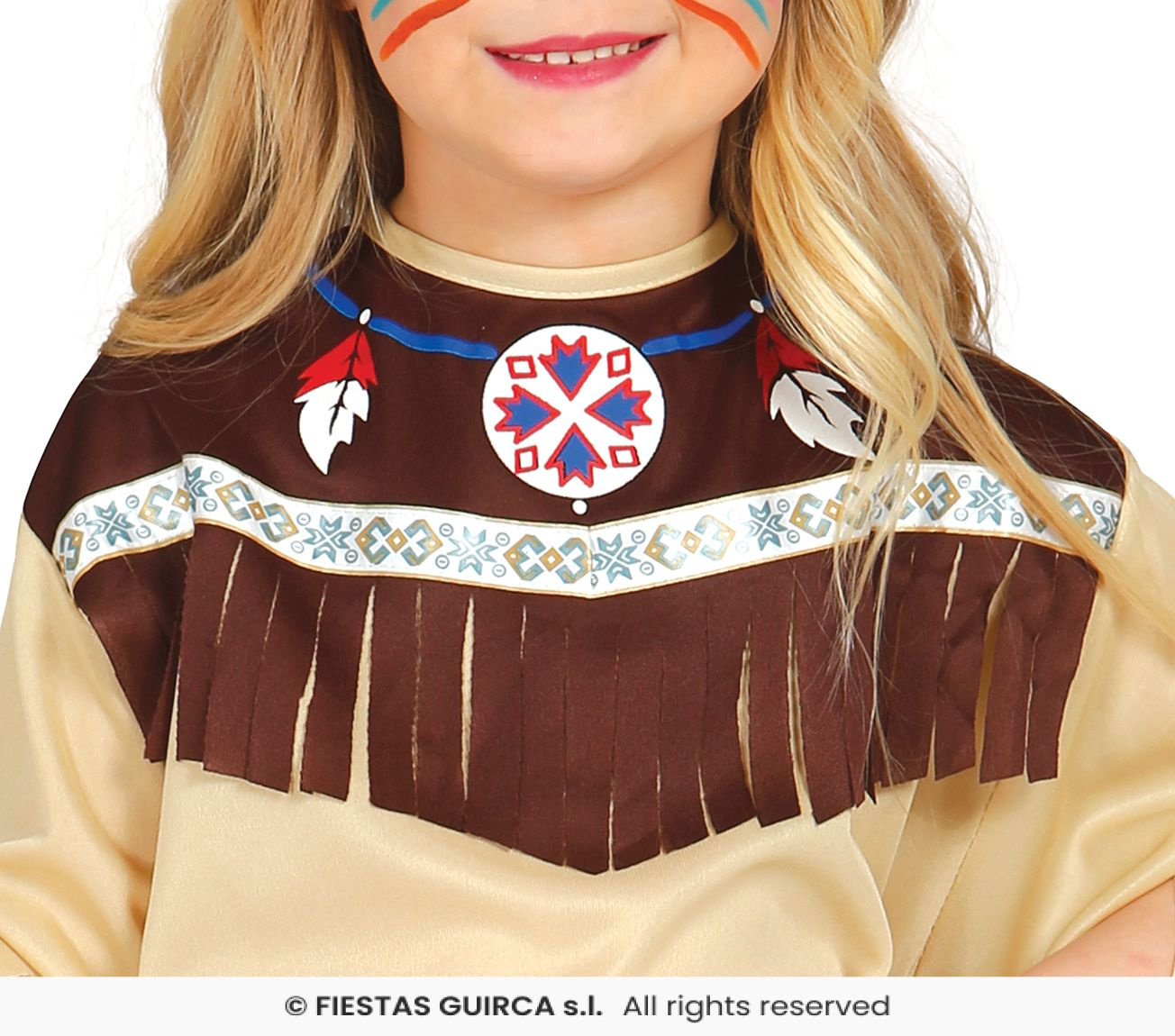 - Dziecięcy kostium „Indianka” — kompletna stylizacja z frędzlami, opaską w piórach i akcesoriami. Świetny na przebranie, karnawał lub motyw „Dziki Zachód”.