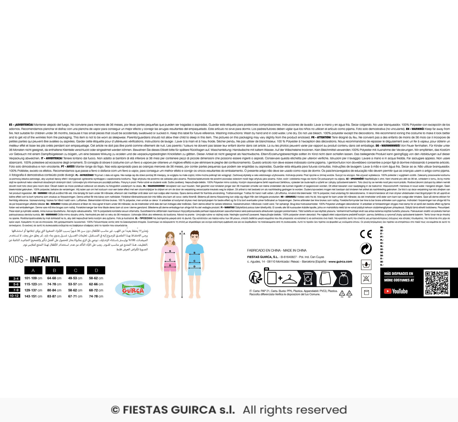 * Upewnij się, że materiały kostiumu nie powodują reakcji alergicznych u dziecka.