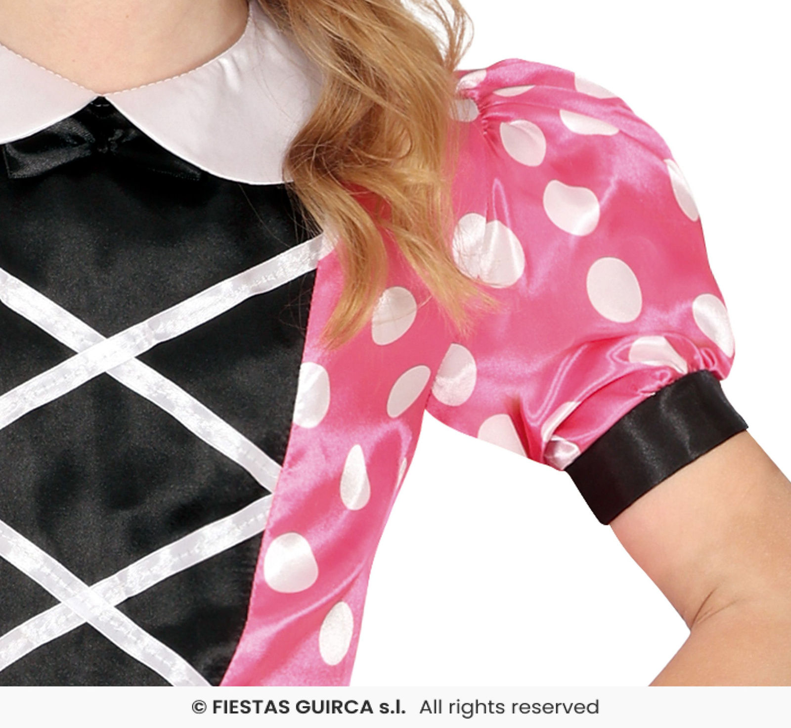 W zestawie znajduje się wygodna sukienka oraz opaska z charakterystycznymi mysim uszami i kokardką — wszystko, co potrzeba, by stworzyć czarującą stylizację w stylu małej, różowej myszki. Kolorystyka w odcieniach różu i kontrastujące detale tworzą przyjazny i przyciągający uwagę look.