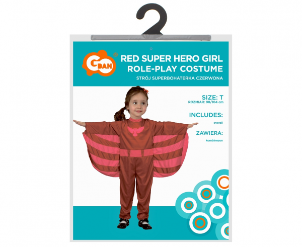 - Kombinezon superbohaterki dla dziewczynki w kolorze czerwonym.