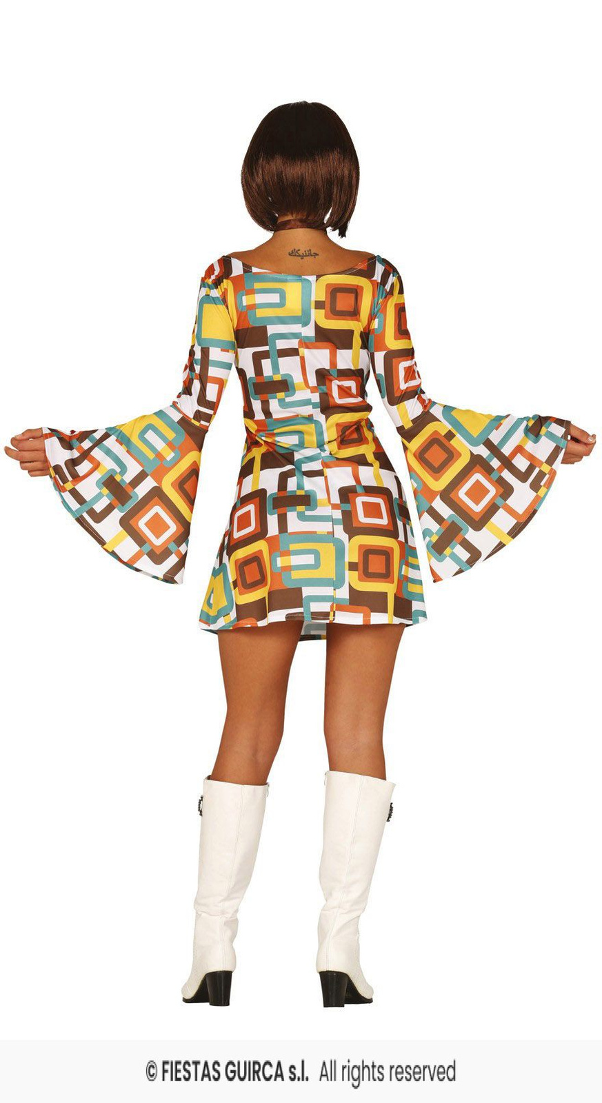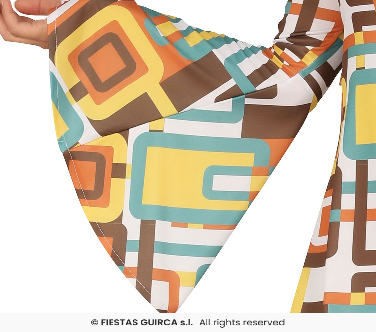 Zanurz się w klimat lat 70. i 80. dzięki tej efektownej, kolorowej sukience disco — perfekcyjnej na karnawał, domówkę, wieczór tematyczny albo imprezę z motywem retro. Ten wyjątkowy strój łączy ducha dawnego disco z wygodą i gotowością do tańca.