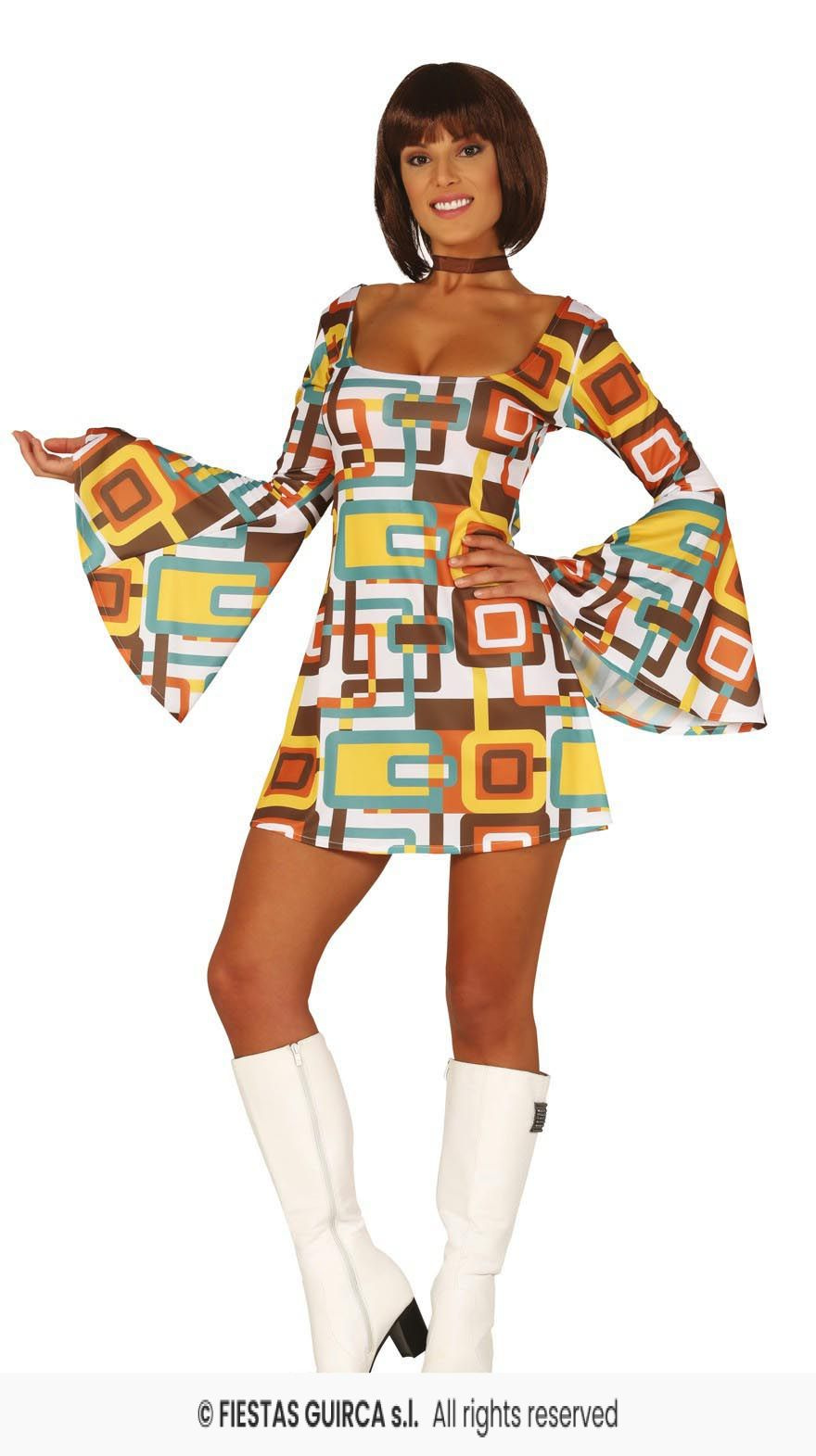 Zanurz się w klimat lat 70. i 80. dzięki tej efektownej, kolorowej sukience disco — perfekcyjnej na karnawał, domówkę, wieczór tematyczny albo imprezę z motywem retro. Ten wyjątkowy strój łączy ducha dawnego disco z wygodą i gotowością do tańca.