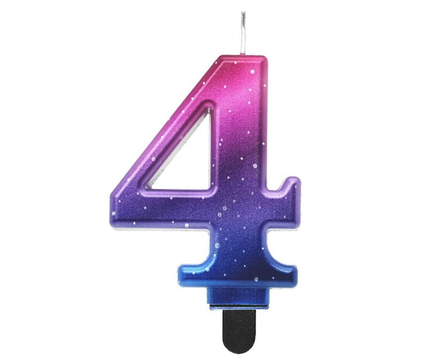 Świeczka B&C cyferka 4, Night Sky, metaliczna, 8 cm