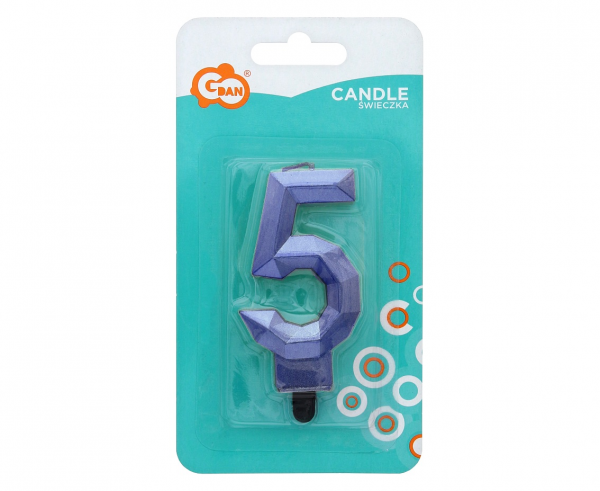 Świeczka cyferka 5 - Diament, metalik ciemnoniebieski, 7.6 cm