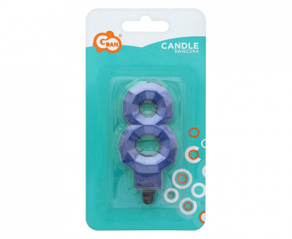 Świeczka cyferka 8 - Diament, metalik ciemnoniebieski, 7.6 cm