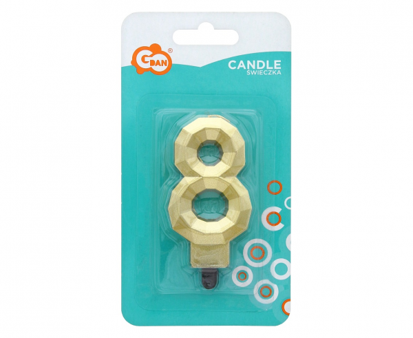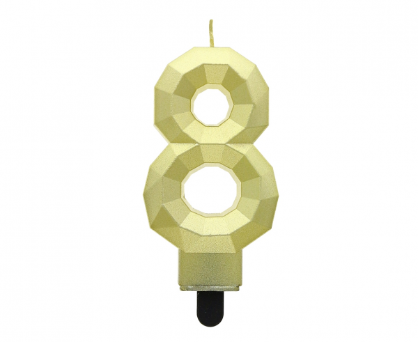 Świeczka cyferka 8 - Diament, metalik złoty, 7.6 cm