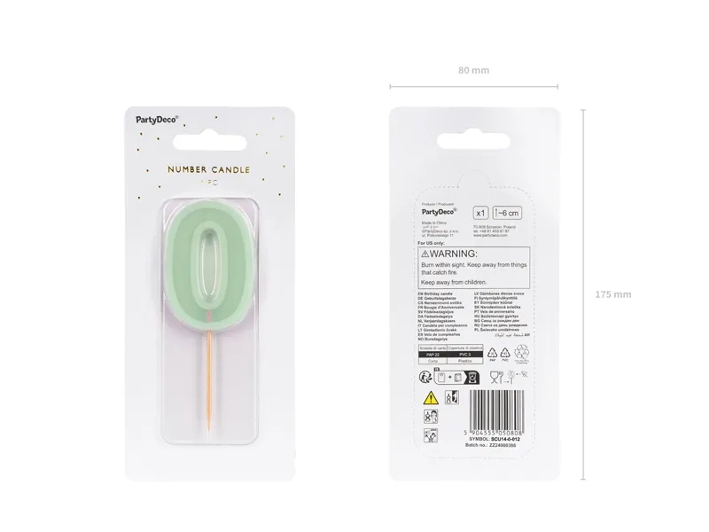 Świeczka urodzinowa Cyferka 0, zielony, 6 cm