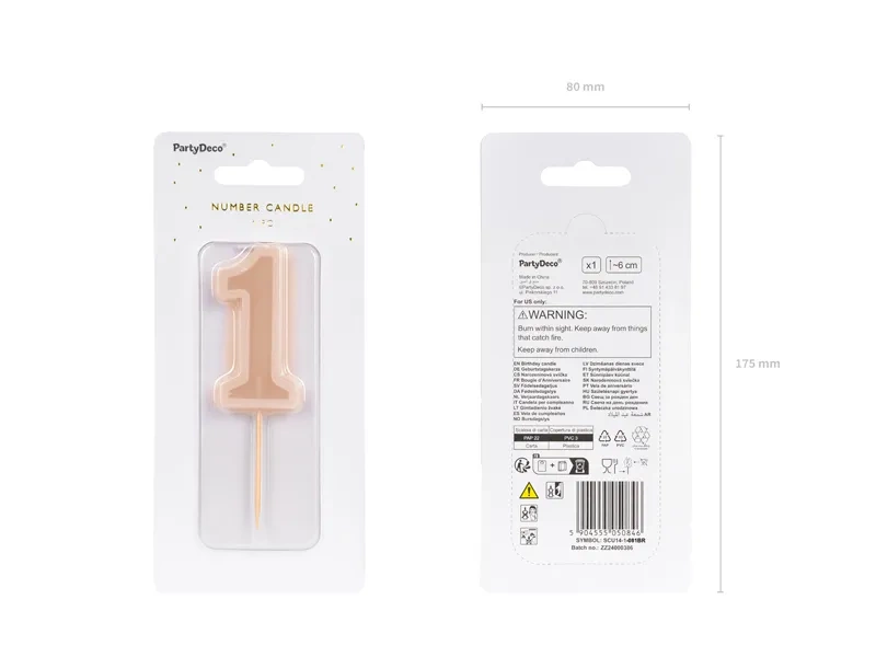 - Świeczka urodzinowa Cyfra 1 w kolorze brudnego różu
