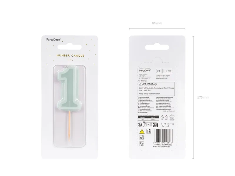 - Świeczka urodzinowa Cyfra 1 w kolorze jasnomiętowym.