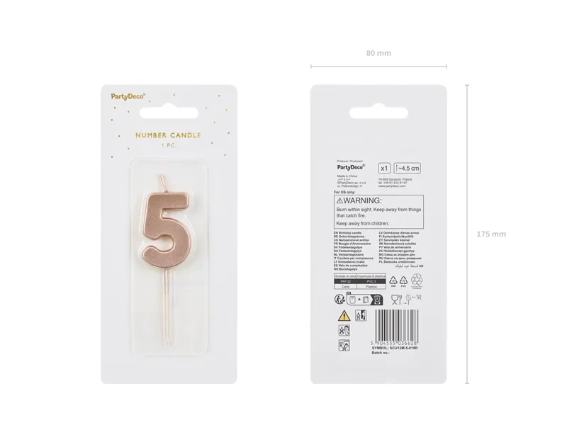 - Świeczka urodzinowa Cyferka 5 w kolorze różowego złota na drewnianym patyczku