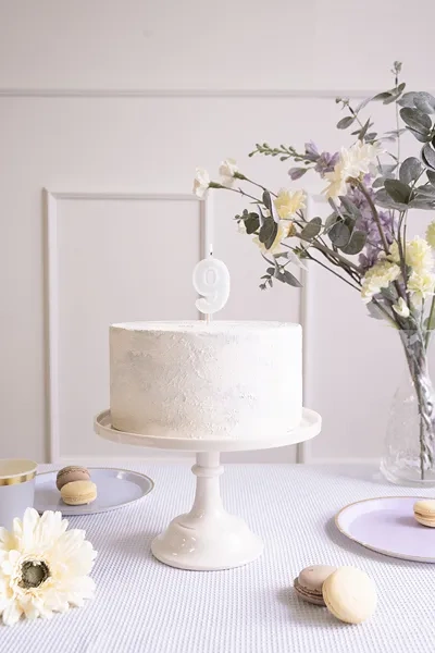 • Świeczka urodzinowa Cyfra 9 w kolorze jasnomiętowym.