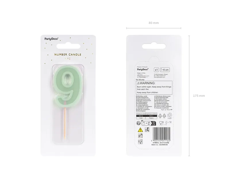 Świeczka urodzinowa Cyferka 9, zielony, 6 cm
