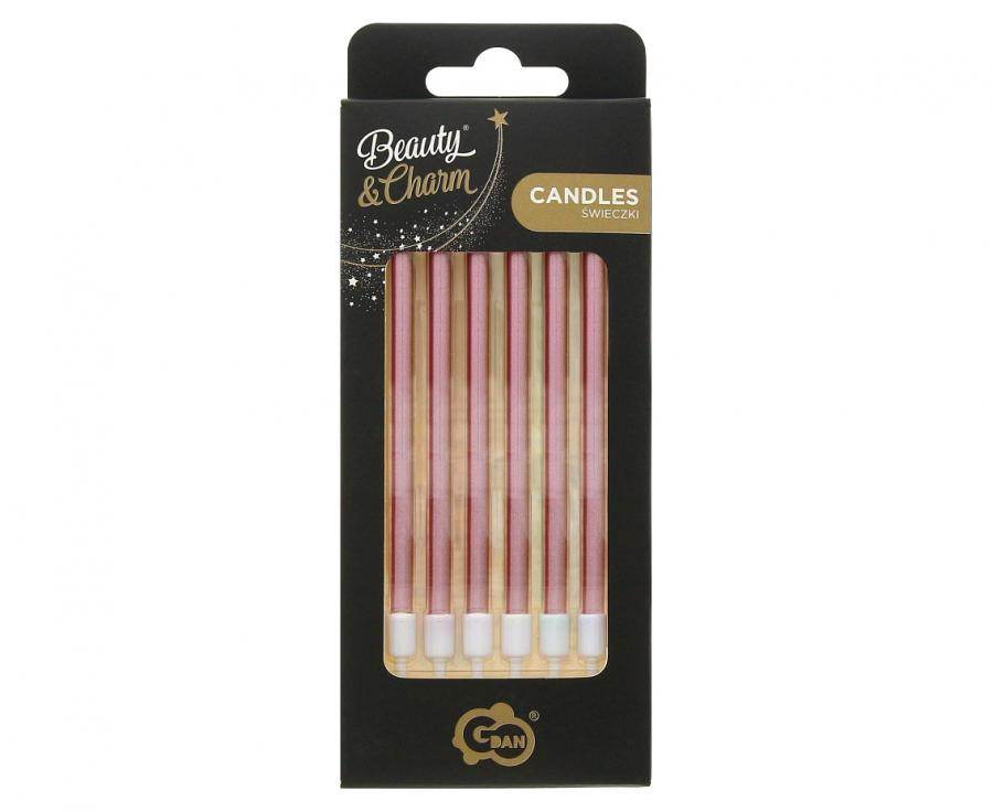 Świeczki B&C metaliczne różowo-złote, 13.5x0.4 cm, 6 szt.