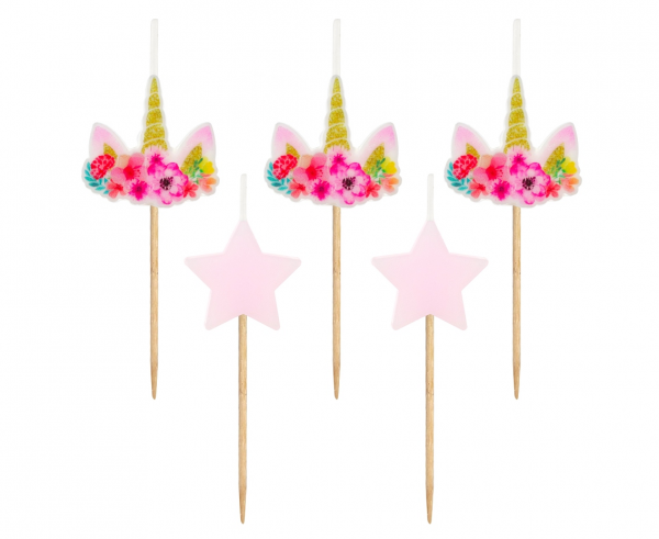 Świeczki pikery Różowy Jednorożec, 5 szt.