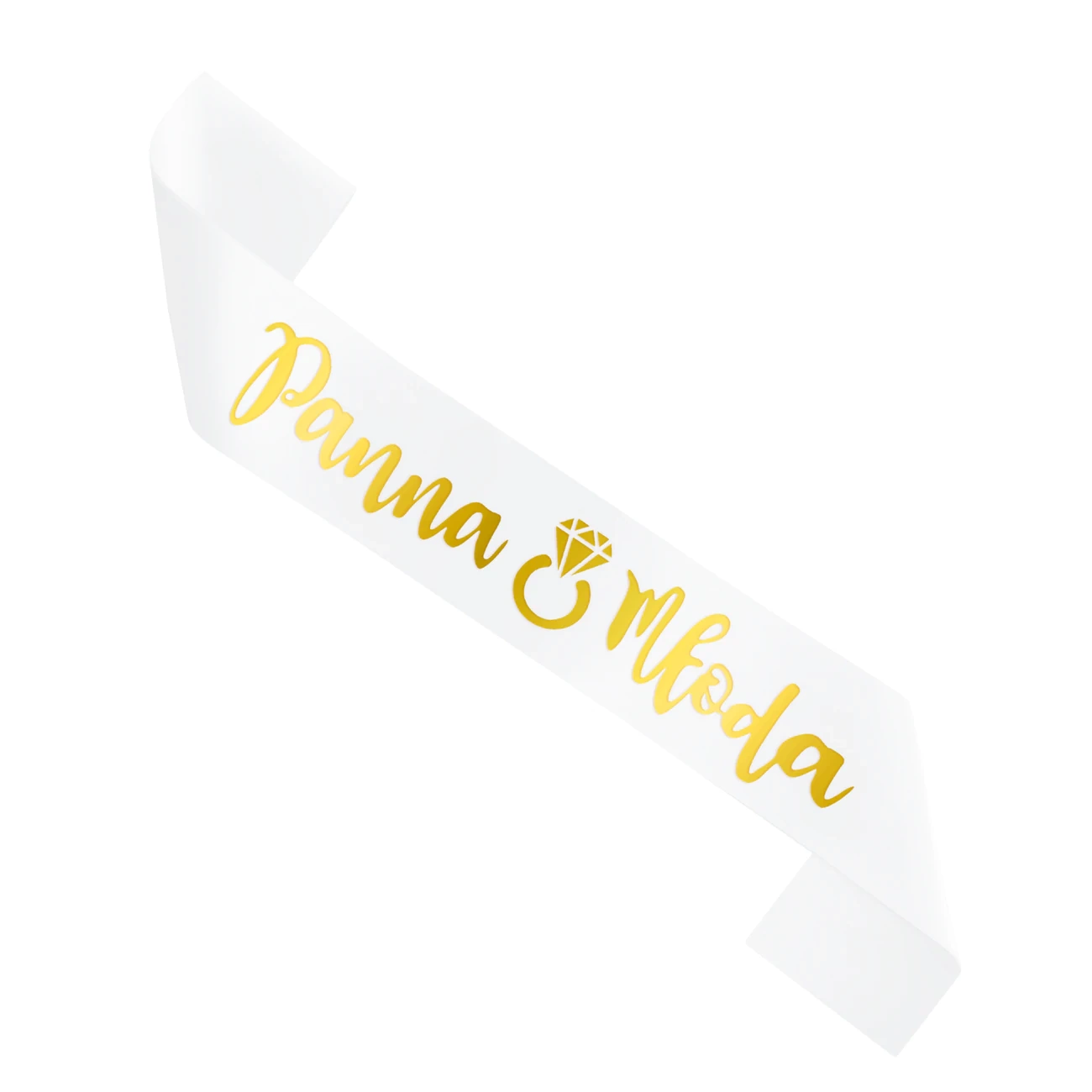 Szarfa Panna Młoda biała 160 cm napis złoty