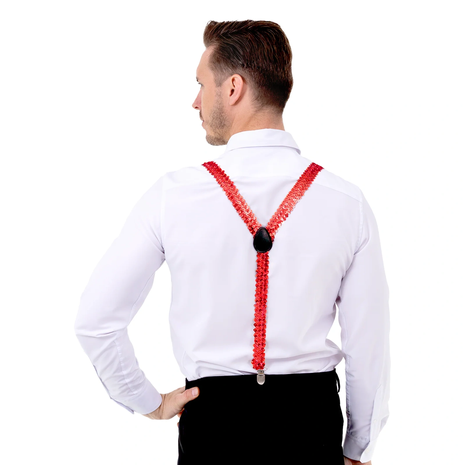 Odmień każdą stylizację i przyciągnij spojrzenia dzięki czerwonym szelkom ozdobionym cekinami. To efektowny dodatek imprezowy, który łączy wygodę klasycznych szelek z widowiskowym blaskiem cekinów. Idealne na sylwestra, karnawał, imprezy tematyczne, wieczory panieńskie i kawalerskie, a także występy sceniczne i sesje zdjęciowe.