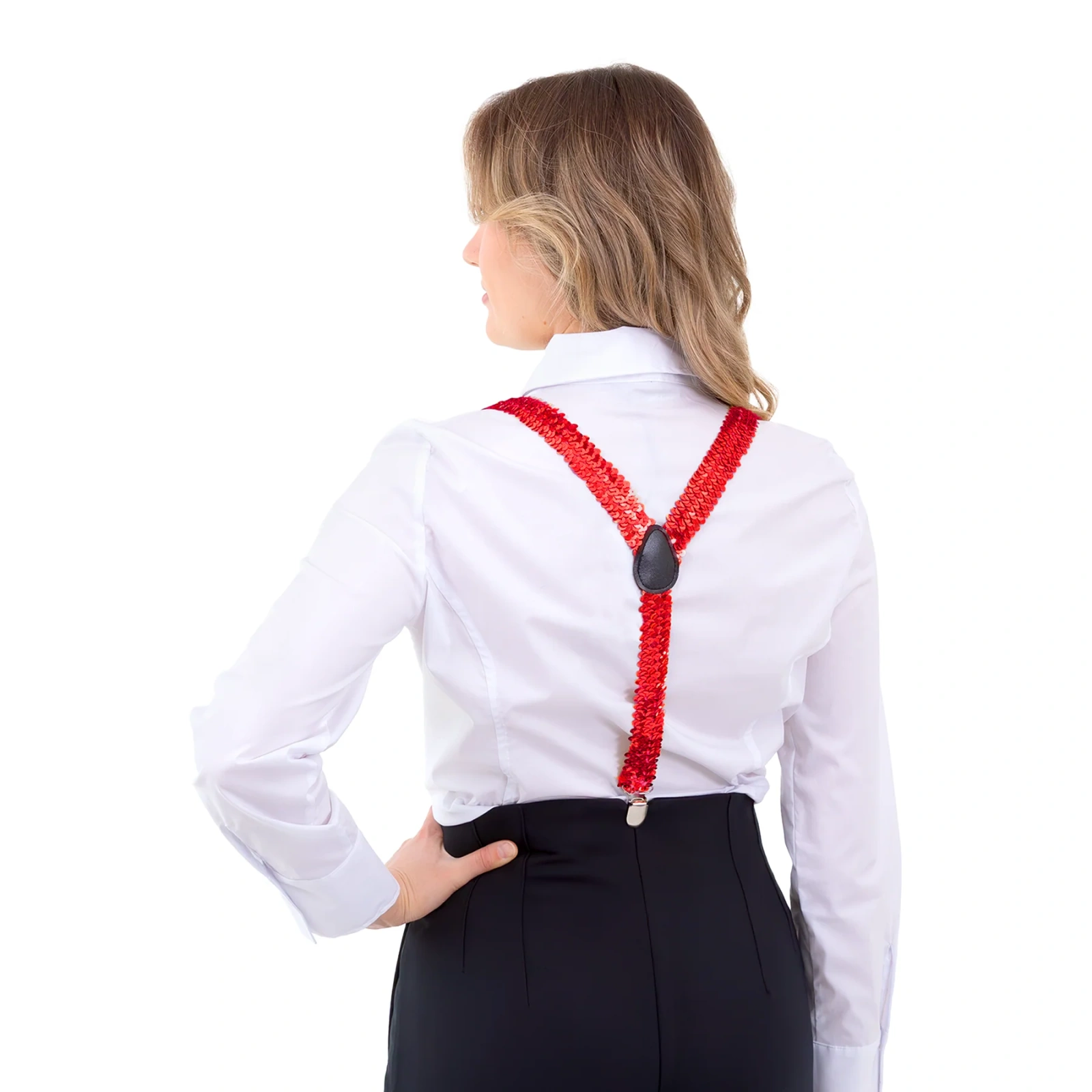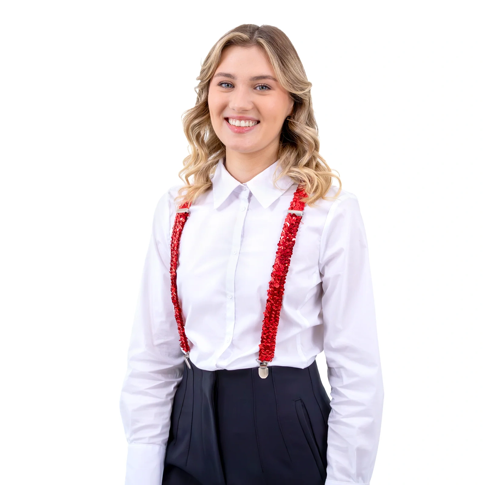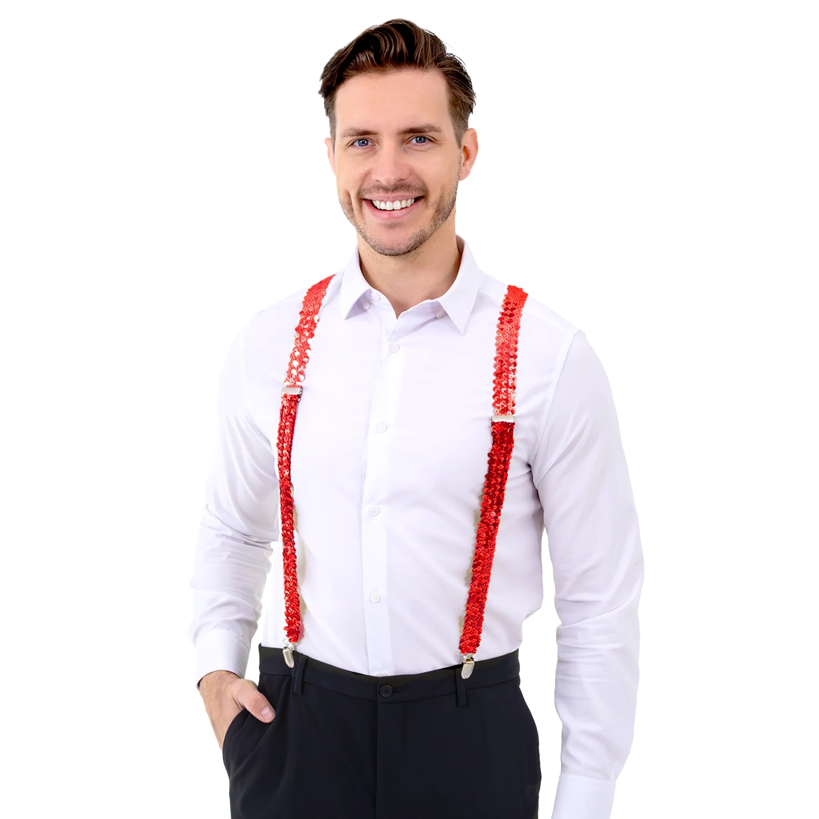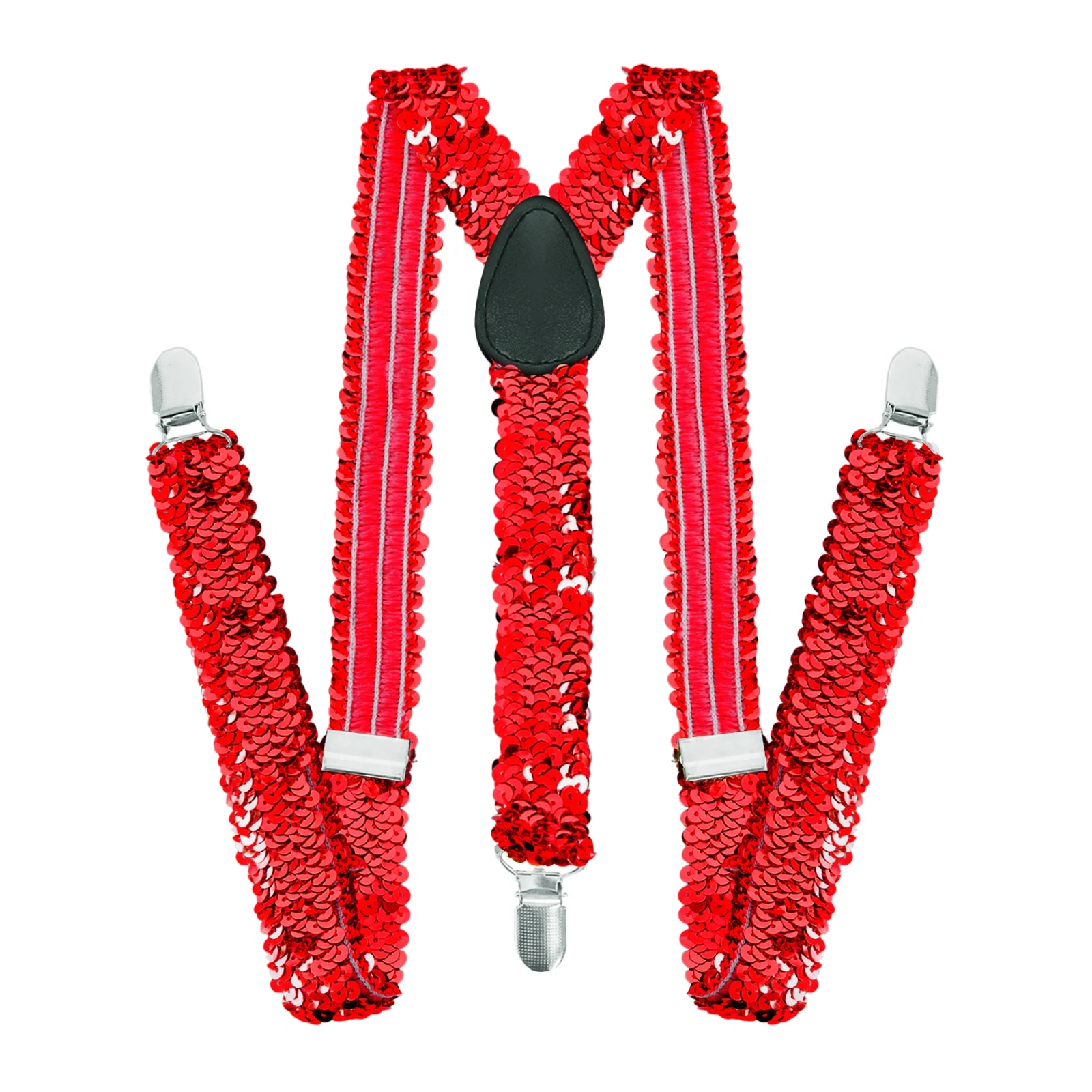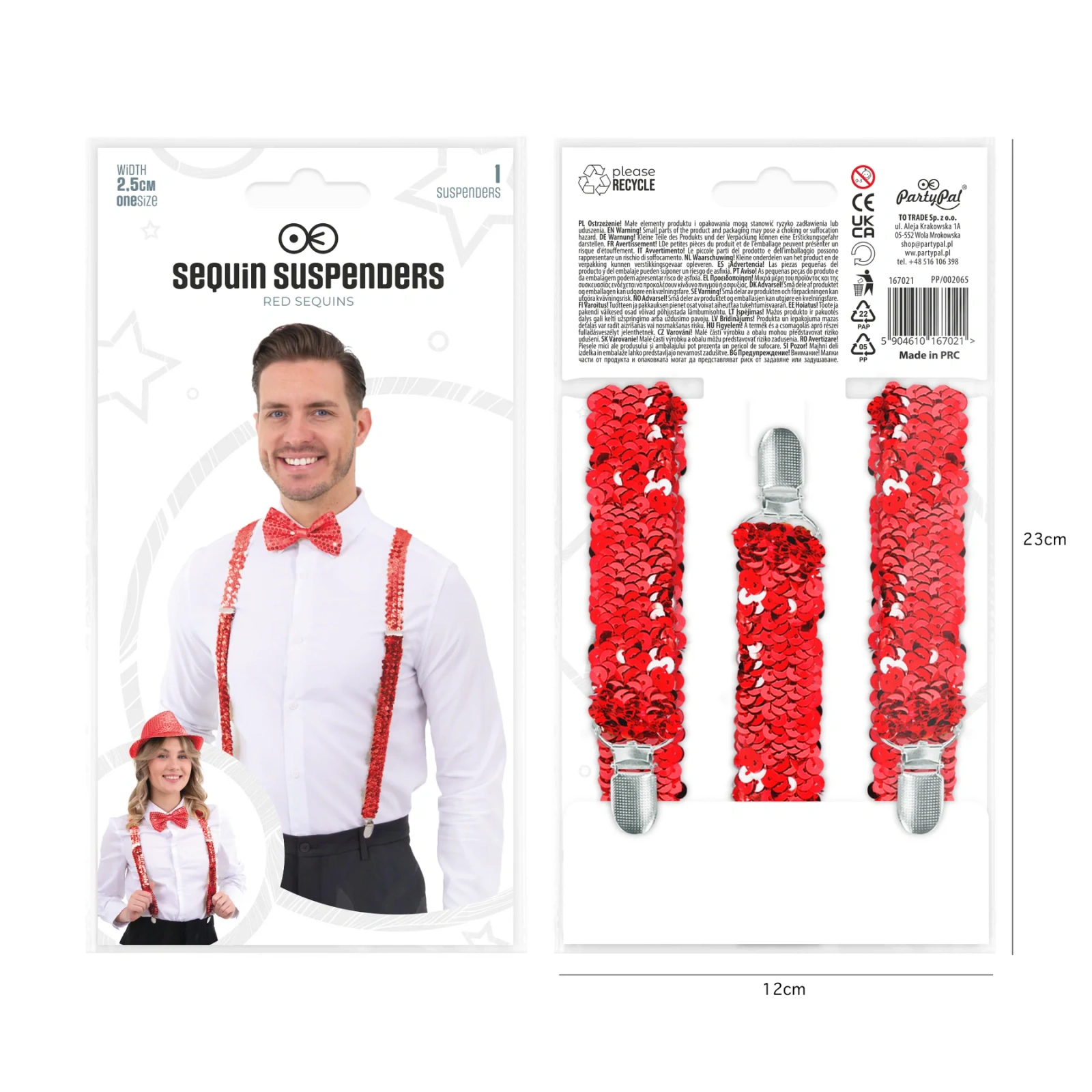 Czerwone szelki z cekinami – błyszczący dodatek na każdą imprezę