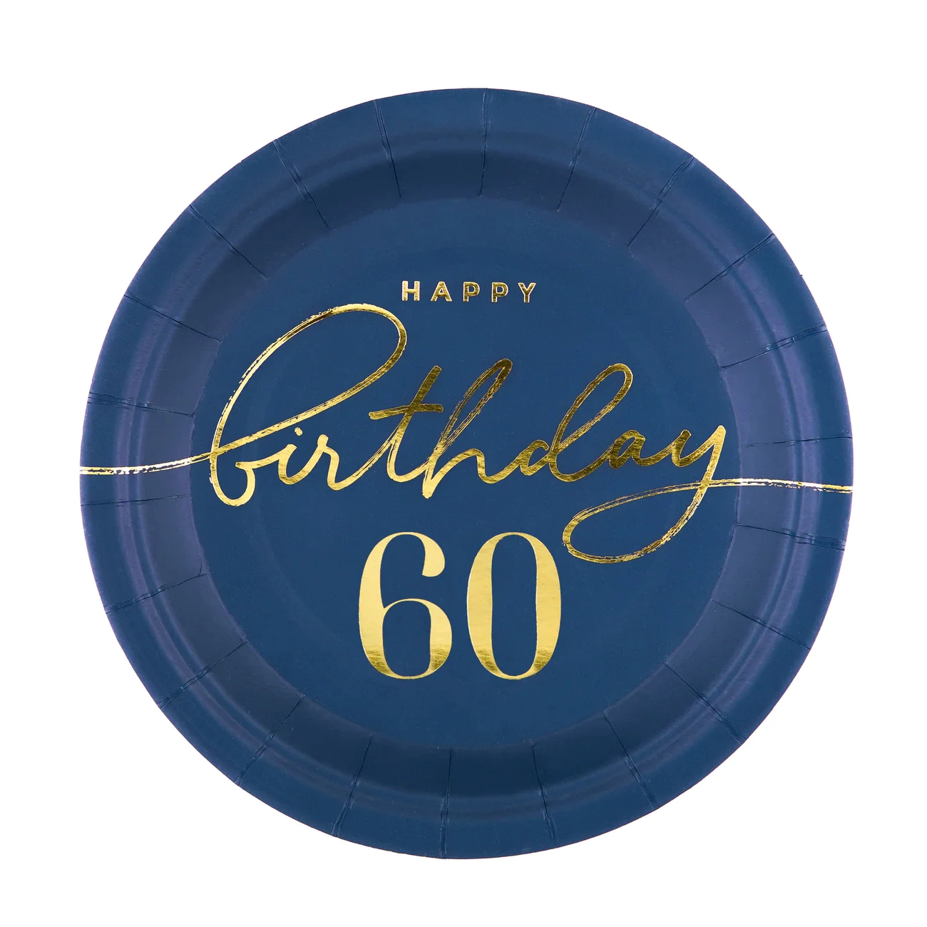 Talerzyk papierowy Happy Birthday 60 granatowy 18cm, 6szt.