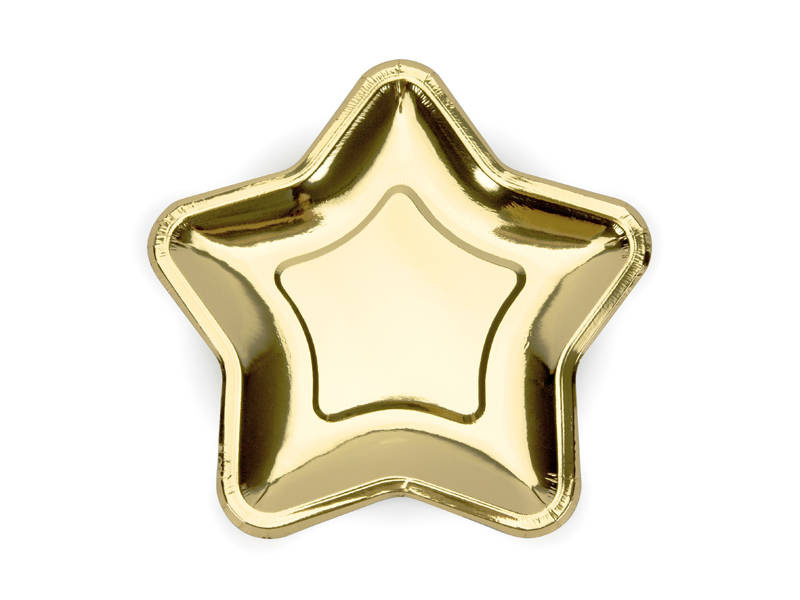 - Talerzyki Gwiazdka wykonane z papieru metalizowanego w kolorze złotym,