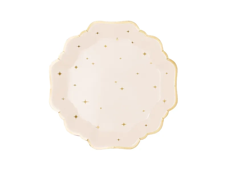 - Talerzyki papierowe Gwiazdki w kolorze beżowym w złote gwiazdki
