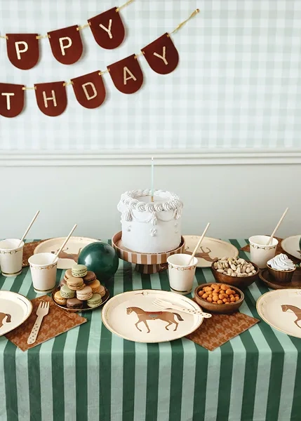 - Papierowe talerzyki z koniem, mix kolorów z elementami złotego błyszczącego nadruku, średnica ok. 23 cm.