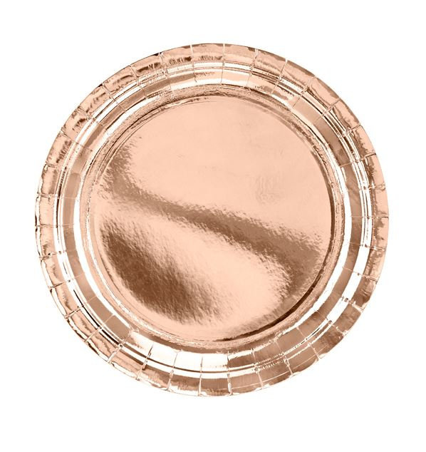 • Talerzyki papierowe okrągłe w kolorze kolorze różowego złota,