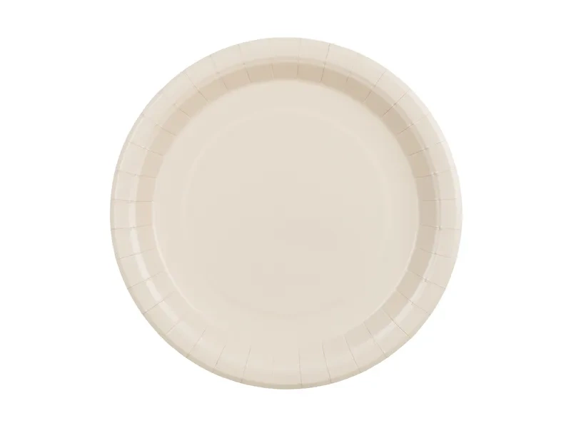 - Talerzyki papierowe okrągłe w kolorze beżowym